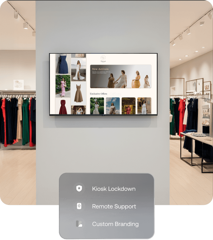 Hexnode powers digital signage, interactive product demos, queue displays, and staff training, while also engaging customers through campaign walls, loyalty programs, and promotional content in retail stores worldwide.